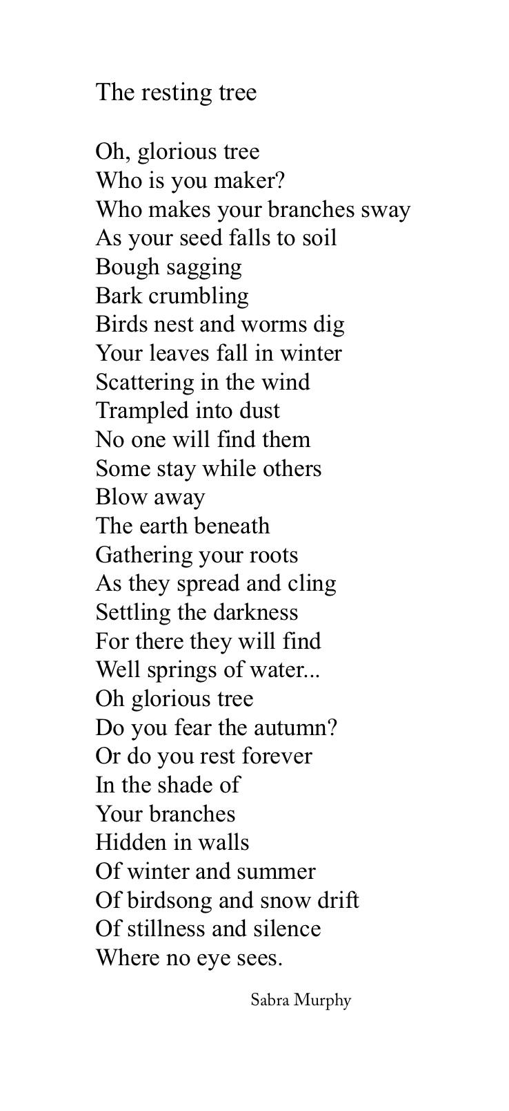 Here is Emma’s latest poem. She typed it out in a steadfast, easy manner, although it took her a few days. She may have a hard time with small talk, but her poetry says more than most could. What a blessing and gift she is!!!