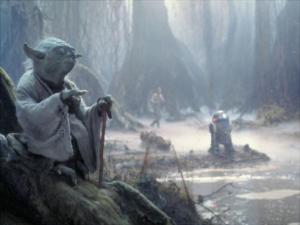 A week later, during the second film, The Empire Strikes Back, I felt myself engulfed, same twinkly eyes shining and glancing over at Emma throughout. Prompting and coaxing her to “C’mon Emma.. sit back down” when she got up to leave the room during the movie when her body just needed to move. Yoda was training Luke in the ways of the Force. Luke had tried and failed to lift his ship from the thick bog by way of the Force complaining that it was too big. Yoda had told him “unlearn what you have learned”, a great classic Yoda line. Luke huffed away and Yoda closed his eyes and proceeded to lift the giant ship out with a wave of his small green hand and lay it softly on the bank. He delivered another small line at the end there that I didn’t remember as a kid, but it now struck me in an unexpected way.