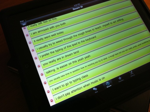 In the meantime, I’m so glad I was able to find Assistive Chat for $24.99 and it is basically a keyboard with voice output that has word prediction capability, which is what I was looking for. WP makes everything just a little bit easier. There are a scant 3 voices to choose from, but there is one that sounds childlike. It’s perfect for Emma since she is typing everything out. And you are able to save sentences, too.